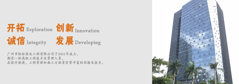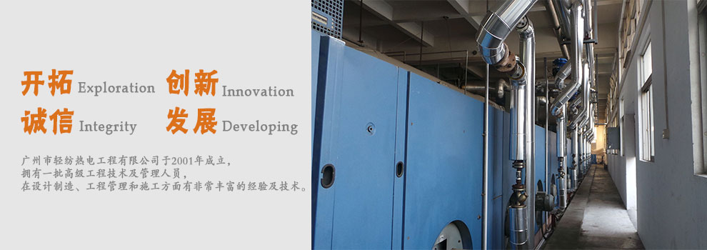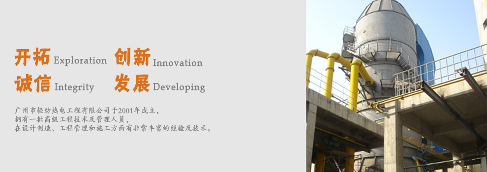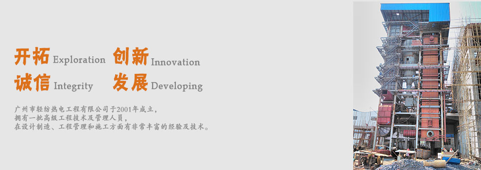 廣州市輕紡熱電工程有限公司于2001年成立,擁有一批高級(jí)工程技術(shù)及管理人員,在設(shè)計(jì)制造、工程管理和施工方面有非常豐富的經(jīng)驗(yàn)及技術(shù)。我司依托廣東省輕紡建筑設(shè)計(jì)院為設(shè)計(jì)背景,并與國(guó)內(nèi)多所高校、設(shè)計(jì)院、環(huán)科院、電力院及同行專(zhuān)家合作,不斷開(kāi)發(fā)及提供新的技術(shù)與服務(wù),為適應(yīng)節(jié)能、環(huán)保技術(shù)的要求不斷進(jìn)步。我司宗旨:開(kāi)拓、創(chuàng)新、誠(chéng)信、發(fā)展。
